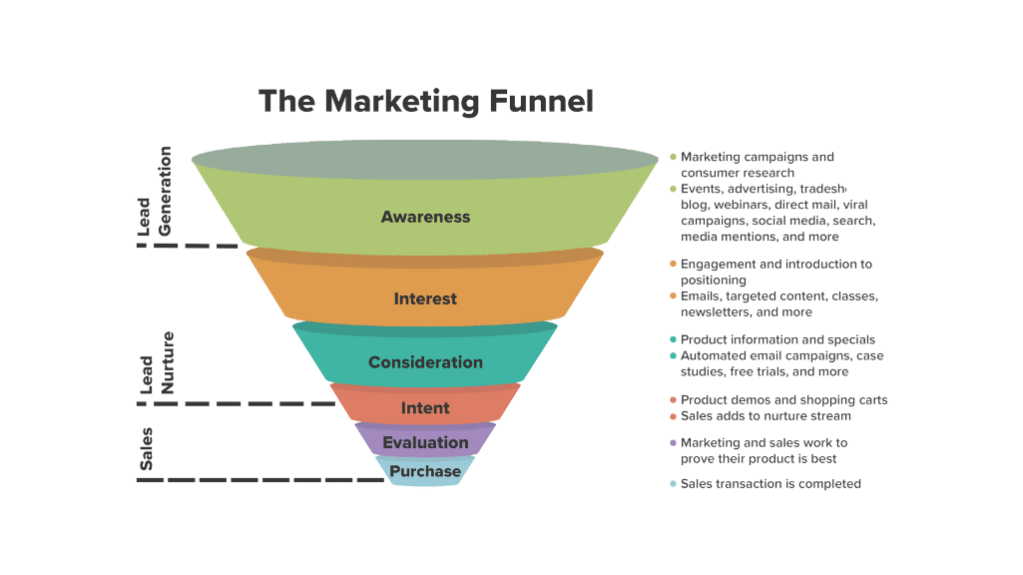 The marketing funnel is a visual representation of a potential customer’s journey from first discovering your brand to becoming a paying customer. Traditionally, the funnel is divided into three key stages: